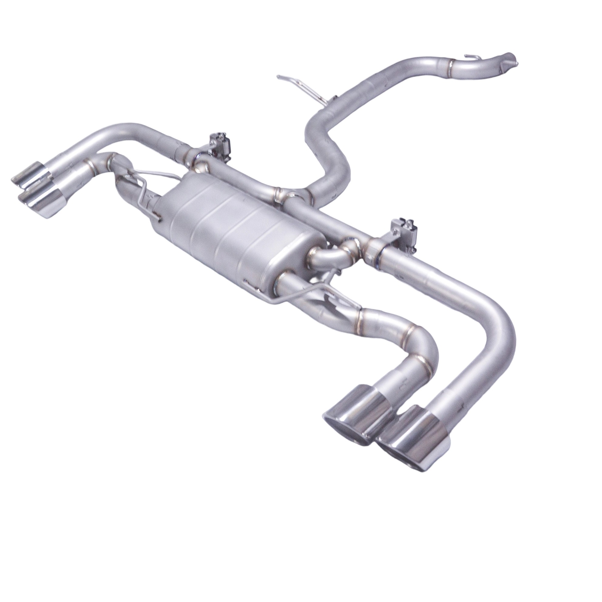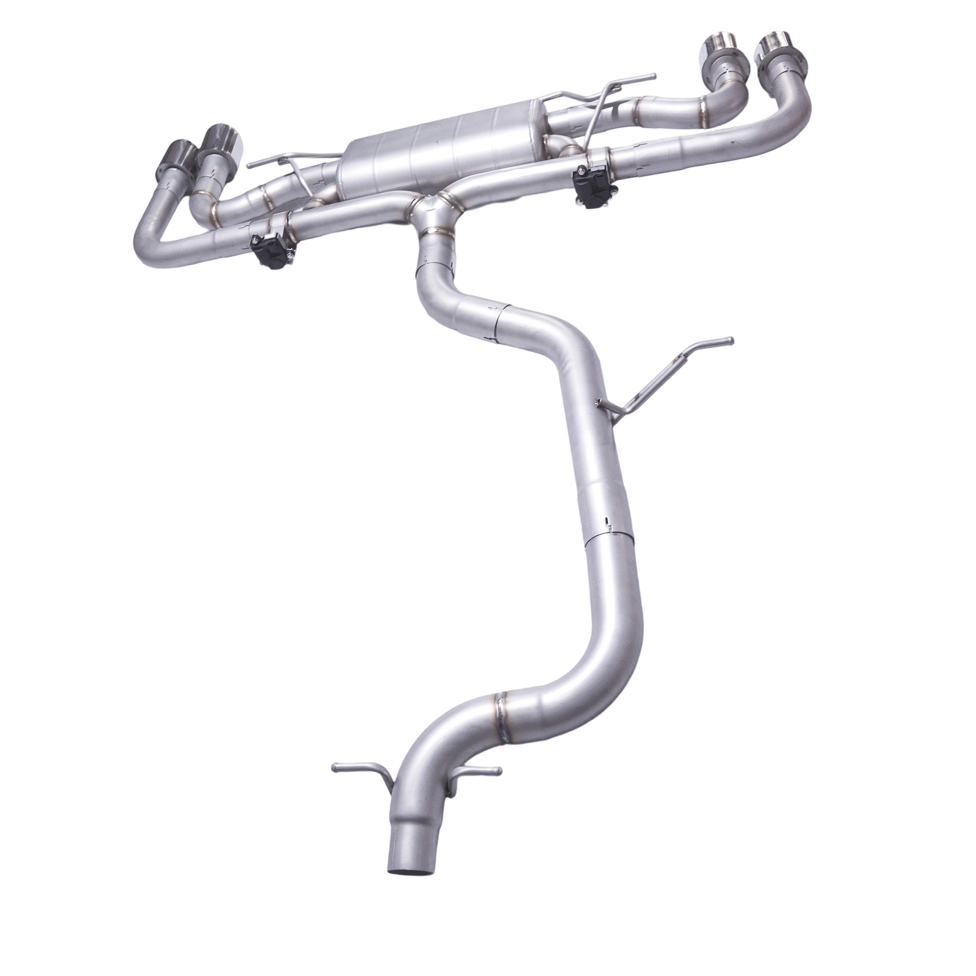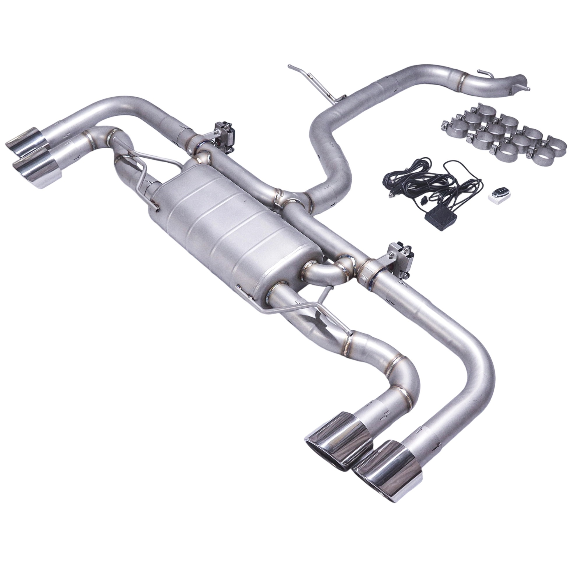 Single Muffler | Dual Valves | Quad 101mm Slash-Cut Rolled Tips | Direct Bolt-On