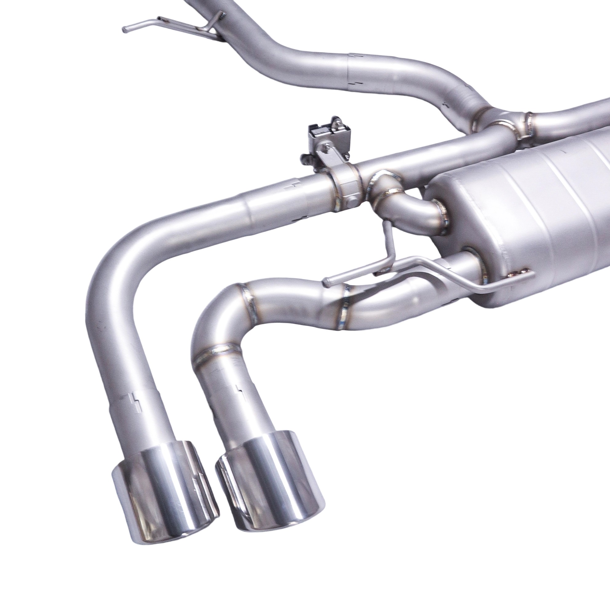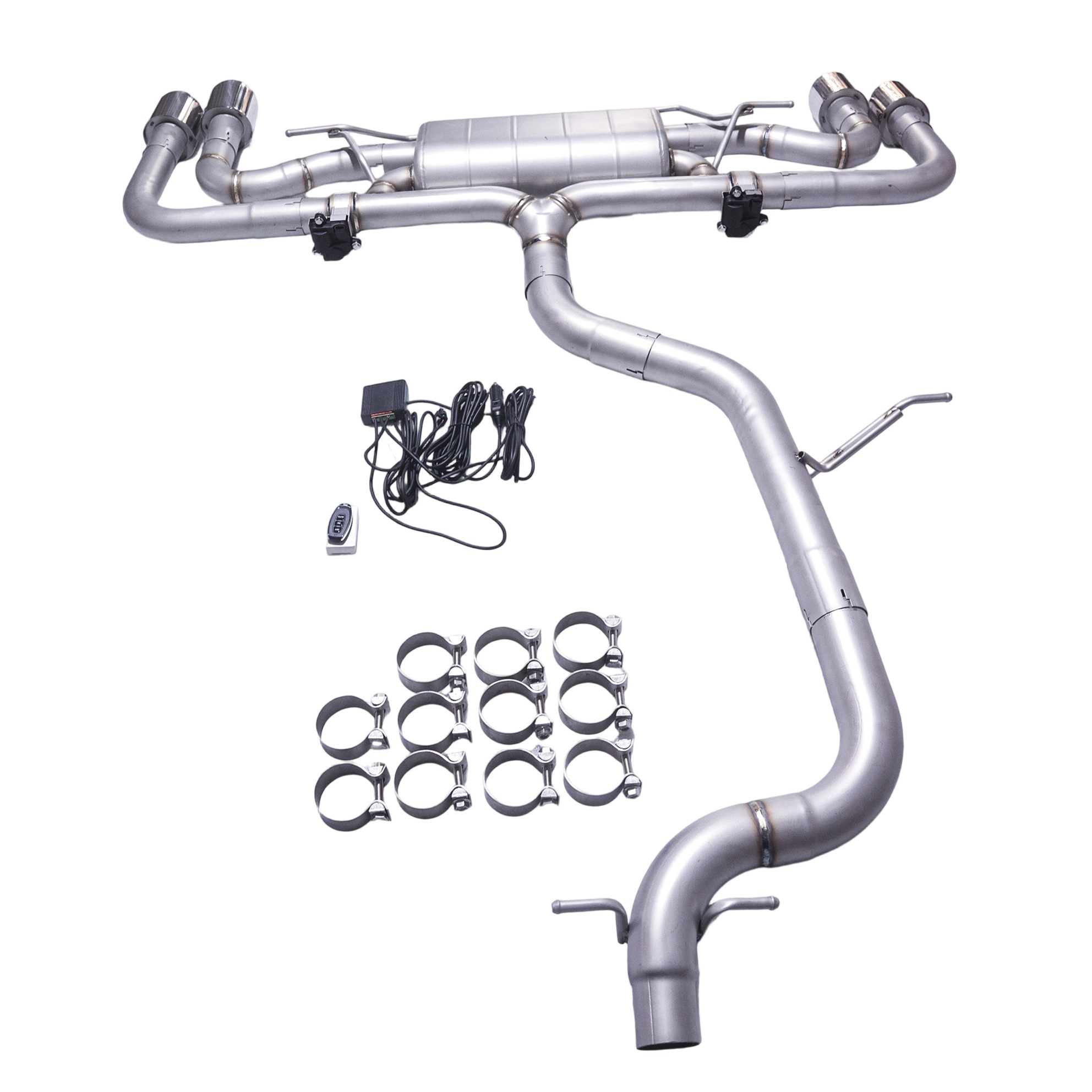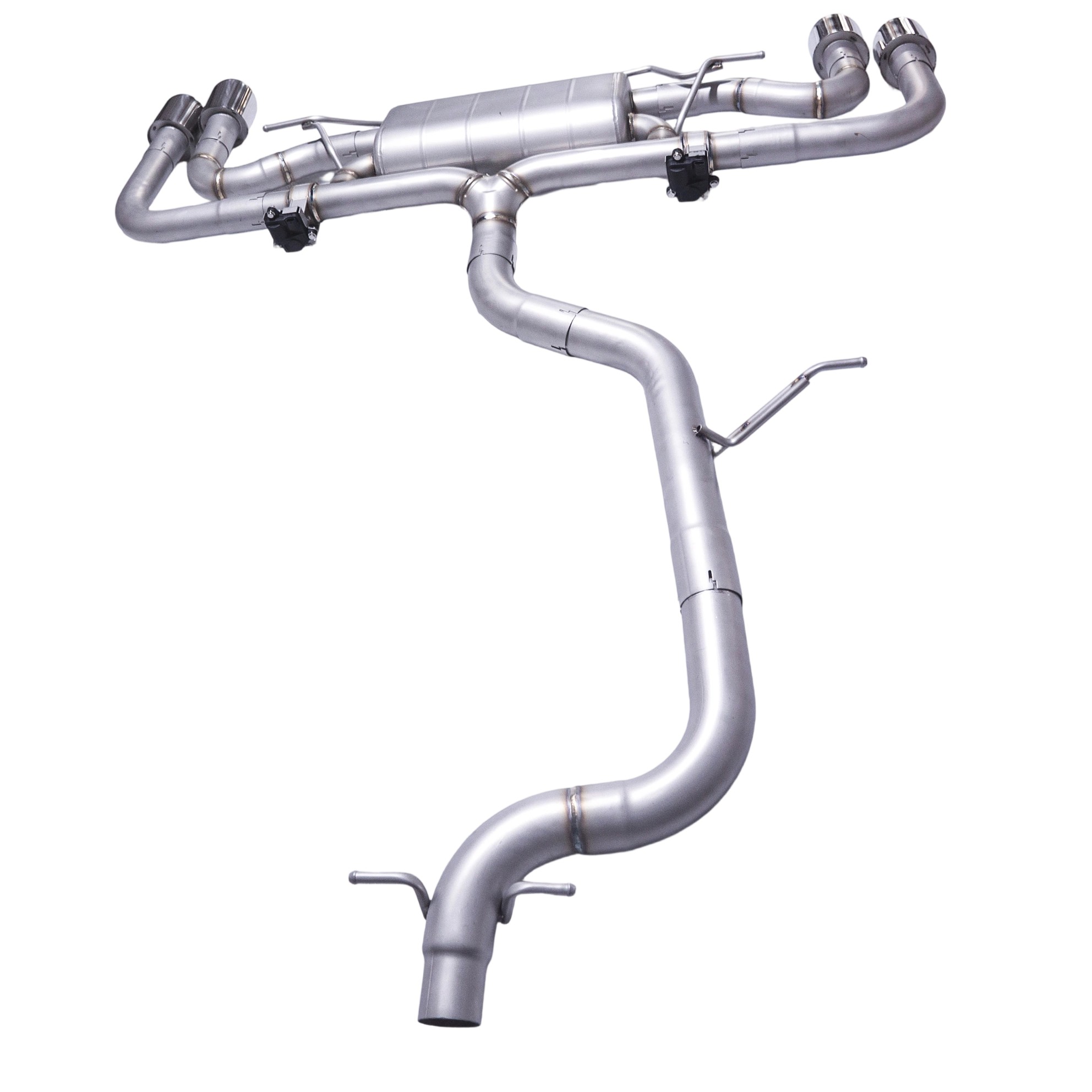Single Muffler | Dual Valves | Quad 101mm Slash-Cut Rolled Tips | Direct Bolt-On