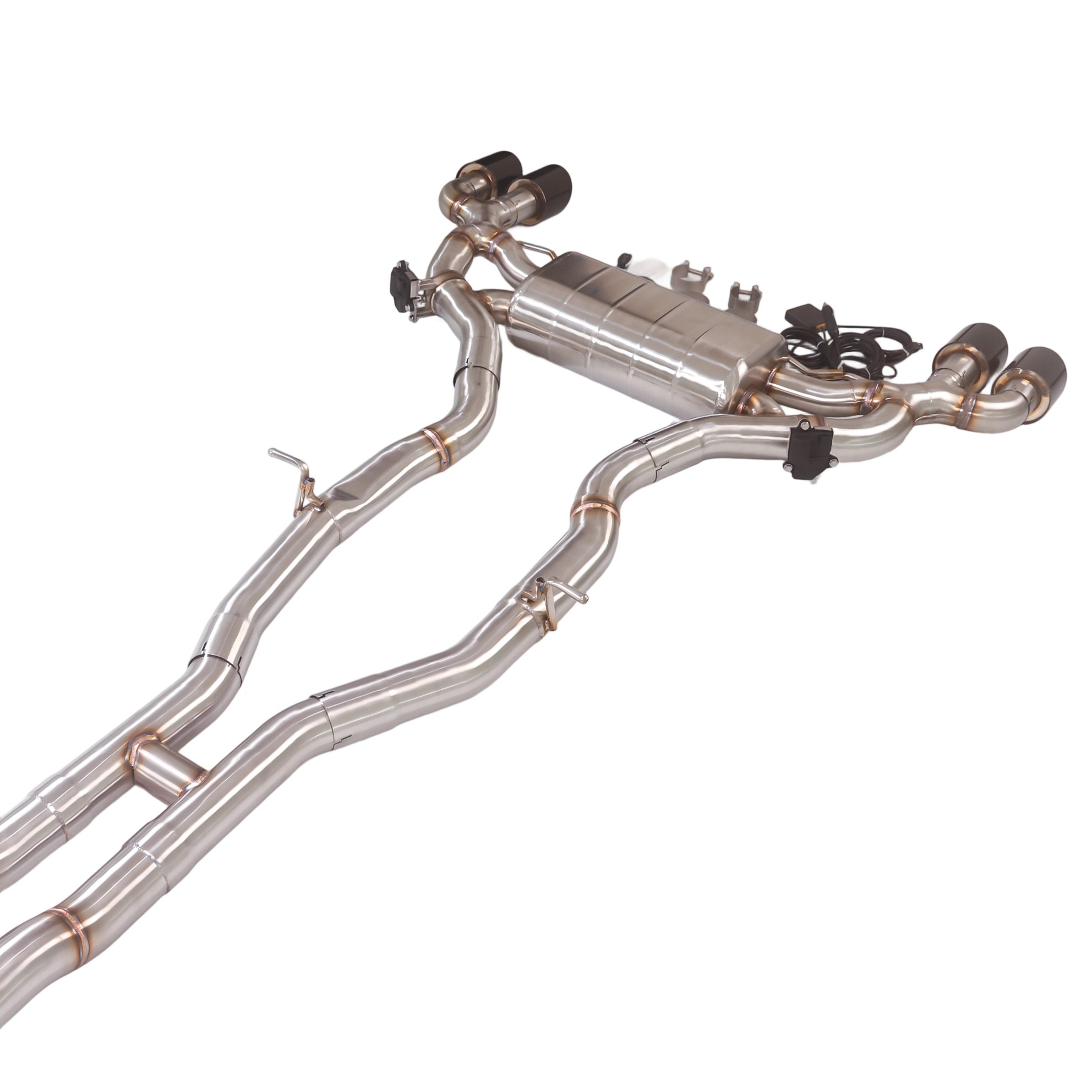 Single Muffler | Dual Valves | Quad 101mm Slash-Cut Black Plated Tips | Direct Bolt-On