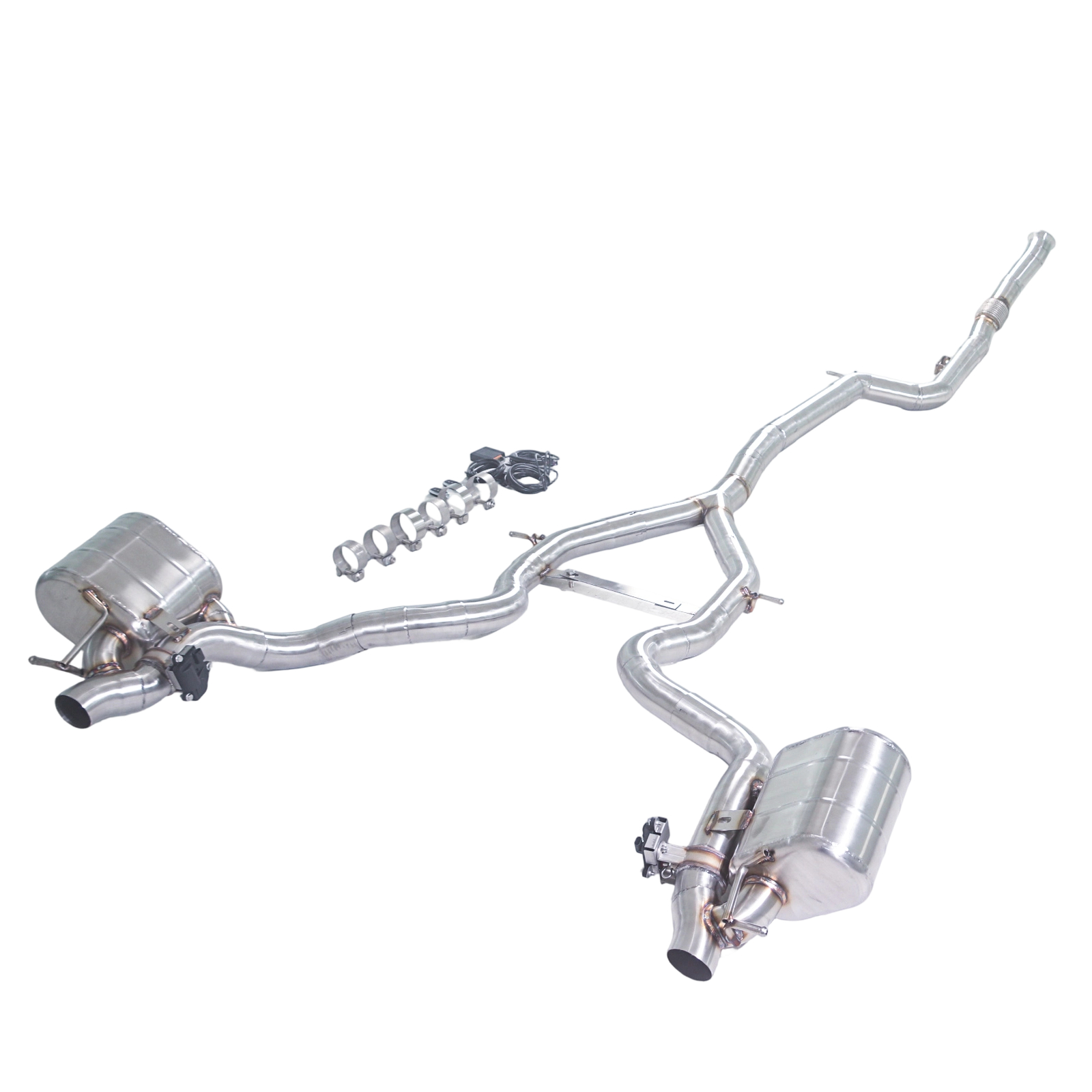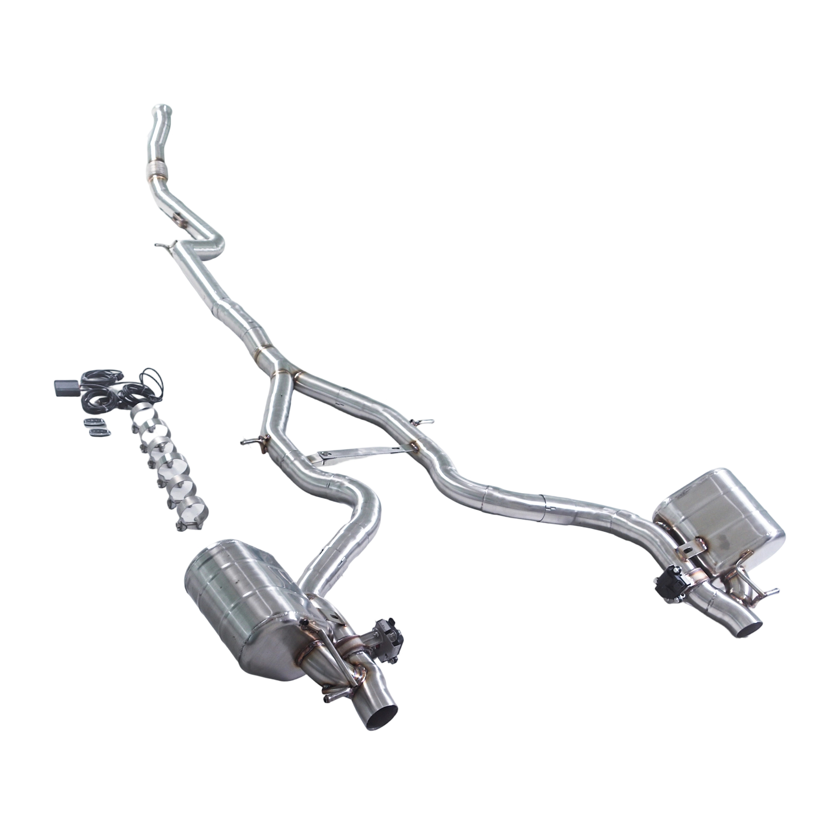 Upgrade your CLE53 3.0T with this premium valved cat‑back exhaust system — engineered to enhance tone and flow without compromising the smooth, luxurious driving experience expected from Mercedes‑Benz. The dual electronic valves put sound control in your hands: keep it composed for daily driving, or open the valves for a deeper, more engaging performance sound.
